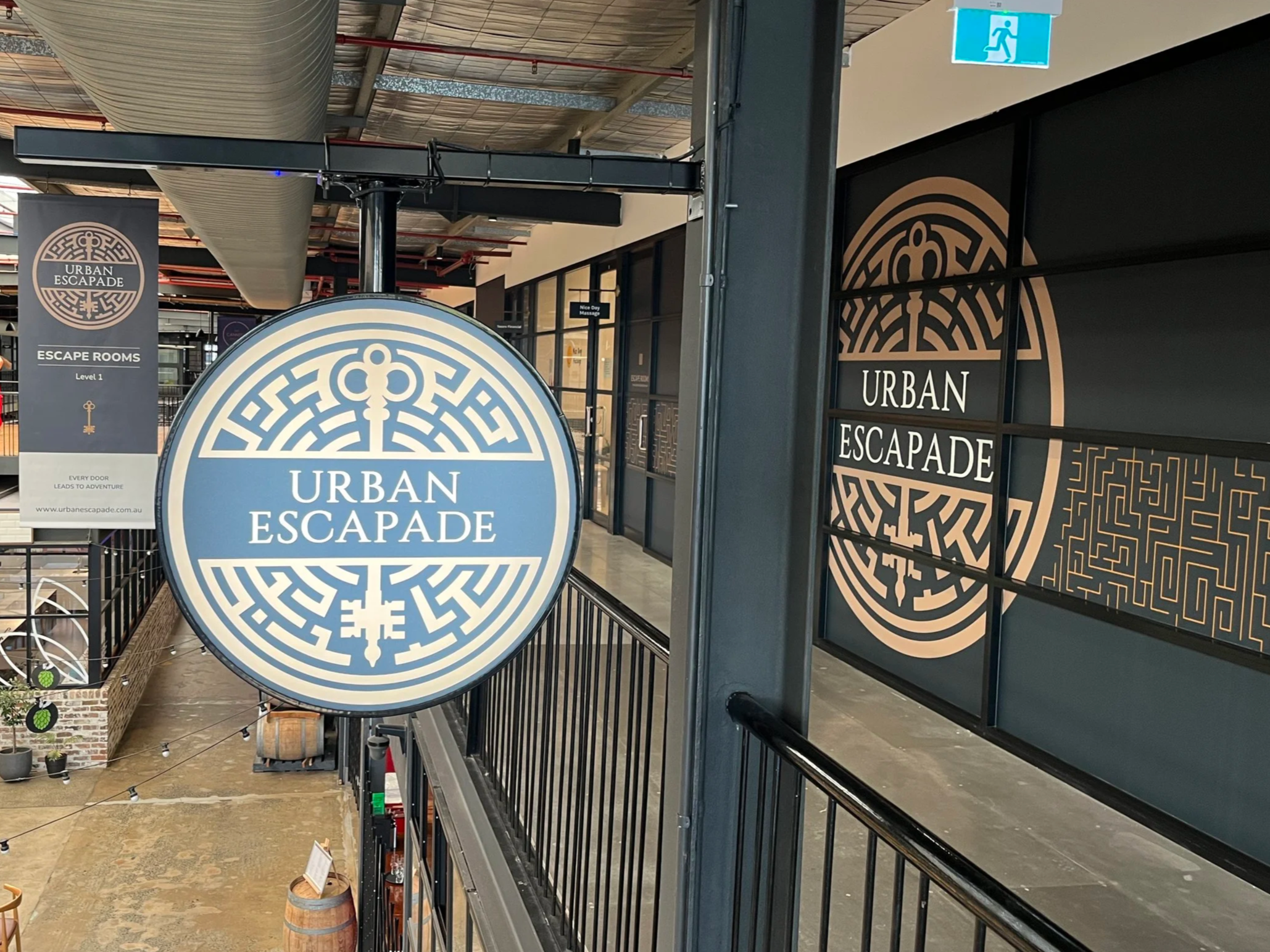 Urban Escapade is an escape room business that launched at The Cannery in Alexandria, Sydney. One Creative handled the full signage package — print, fabrication, and installation.